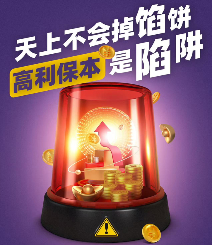 堅守底線,不管宣傳的活動多么“有利可圖”,都需要保持冷靜,切勿盲目做出投資決定,時刻謹(jǐn)記:你貪的是別人的利息,別人要的是你的本金。